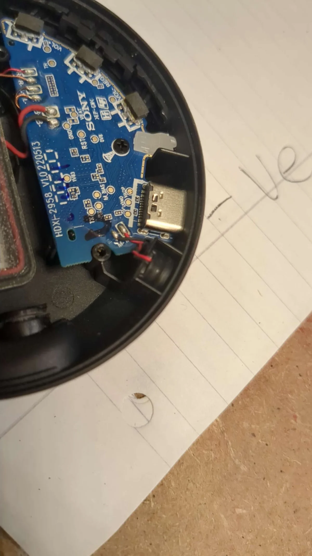 USB socket that had been mangled on the inside. Solder in a new dev board from online and job’s a goodun!