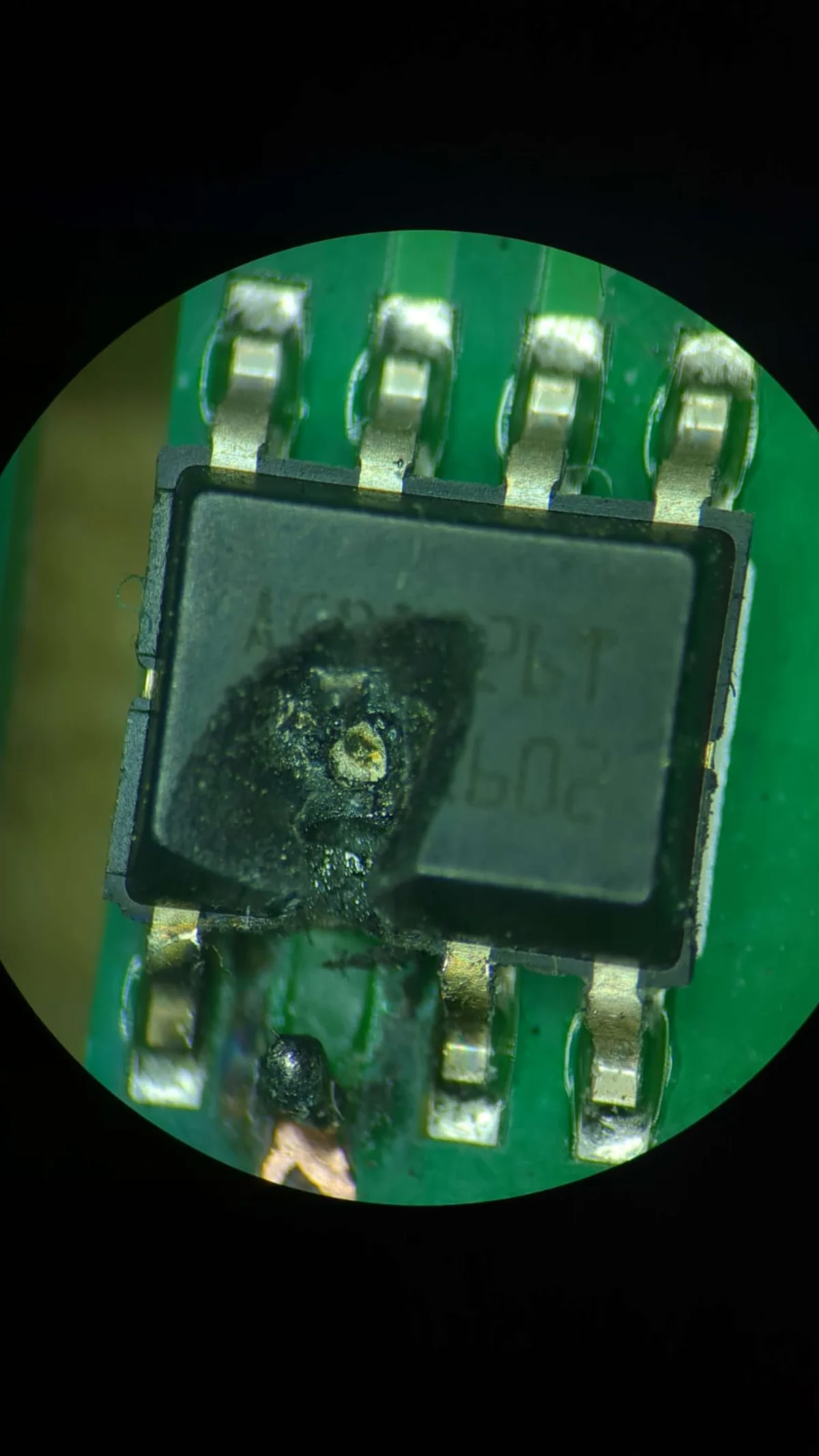 The pictures are fun because you can see straight down to the silicon as the explosion popped off the epoxy encapsulation of the IC