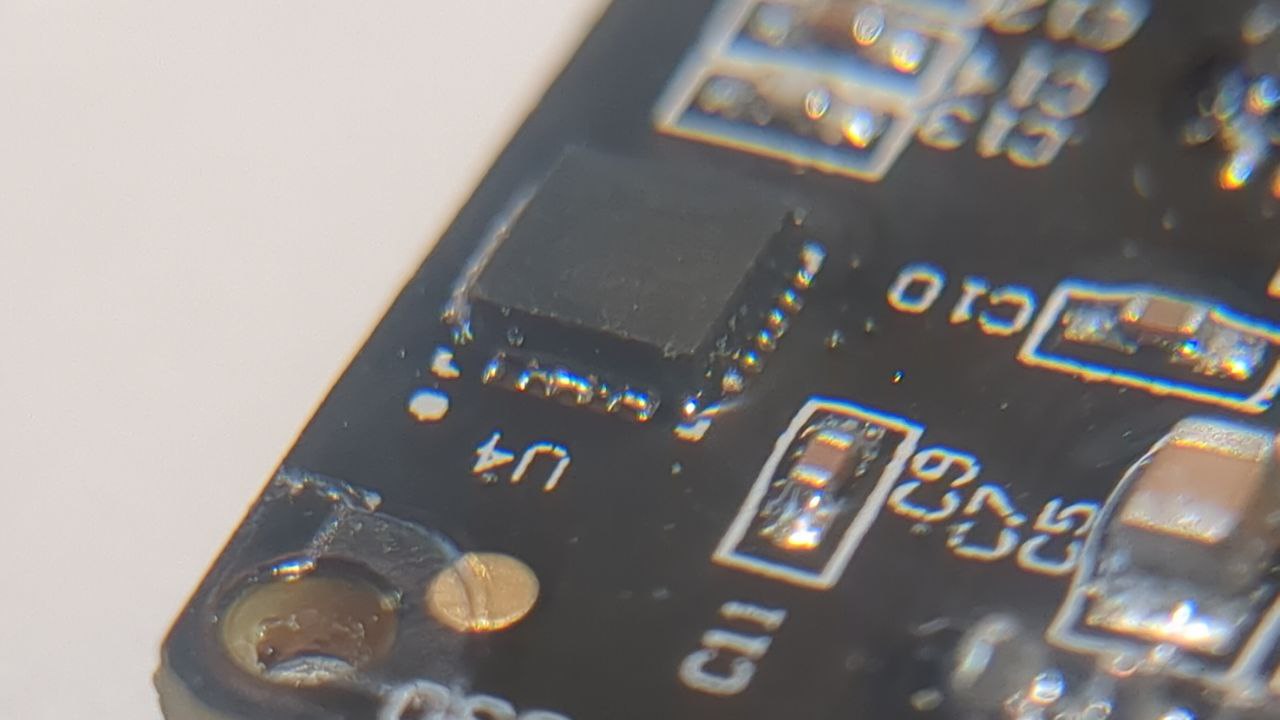 This is an issue I had during PhD, where we’d purchased a few IMUs at once and one of them just wouldn’t boot and wouldn’t turn on. I couldn’t resist opening it up and having a look at what the issue was. Turns out the IMU chip itself had an issue during soldering, causing 3.3V to be shorted to ground, as you can see in the photos. This was quite surprising, as if 3.3V was shorted, it wouldn’t have been possible to flash the devices in the factory with the microcontroller code? The corresponding microcontroller is powered by 3.3V, so it needed that rail to be correct. The manufacturers obviously didn’t have a check to see if the micros were successfully flashed! We got a full refund once we showed these images