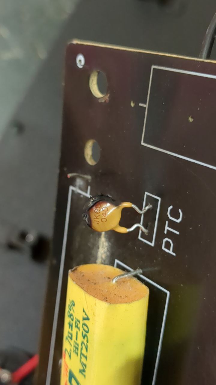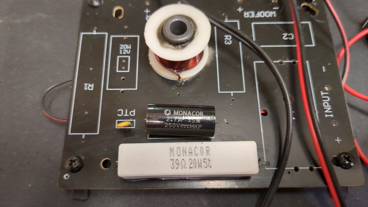 Guys came in with a PA set that had been plugged in when the bassist incorrectly wired up one of their pedals/amplifiers, then there was an awful sound and a disgusting smell, according to them. Had a cursory look at the PA deck, to make sure nothing was wrong there and didn’t see anything immediately broken. Open the speaker cabs and look at the pre-filters and the 20W resistor as part of the RLC filter had gotten so hot the legs had exploded out of both speakers! The thermal fuse on both boards inside the speakers had exploded and released their magic smoke. One of the cones sounded pretty damaged, my rubric for that being if you push in on one of the cones and hear a ‘crinkly’ sound, like a crisp packet being rustled, the driver is damaged. One speaker cone sounded exactly like that, and the other one sounded similar bit not as bad. I asked the people who brought them in, and they were happy to replace both of them at the same time so they’d sound close to similar. A colleague contacted the speaker manufacturer and suggested a replacement driver, so sourced that. Then purchased replacement components for the board and re-soldered the new ones on – sourced from https://willys-hifi.com which was a great site for this. Nice and easy fix, if a little expensive for the customers.