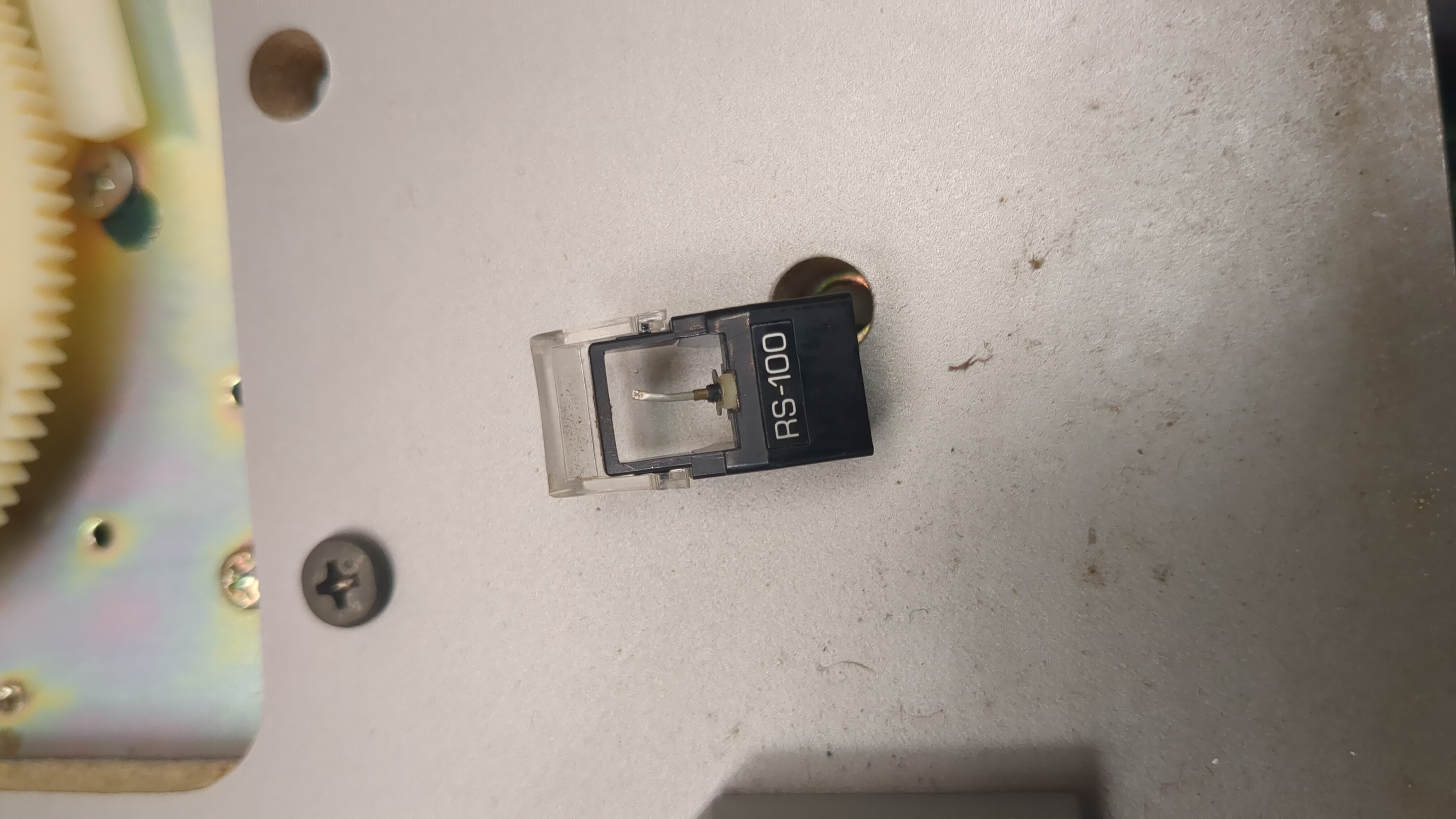 This was a turntable that was found in the recycling bin, which we thought must be able to be fixed. Powers on, but as it's a direct drive turntable, you need to ensure the marks on the disc are synchronised with the pulsed light. These are controlled by the trimming potentiometers, which no matter how much you spinned them they didn't seem to synchronise. Opened the unit and squirted a bunch of switch cleaner into the potentiometers and there we go! When we put a record on however, we realised the stylus had been terribly abused and is missing the sharp diamond point. A new stylus is on order for £20 and we are seeing what we can do about the counterweight. This will go on to be sold at the cafe to keep our funds going.