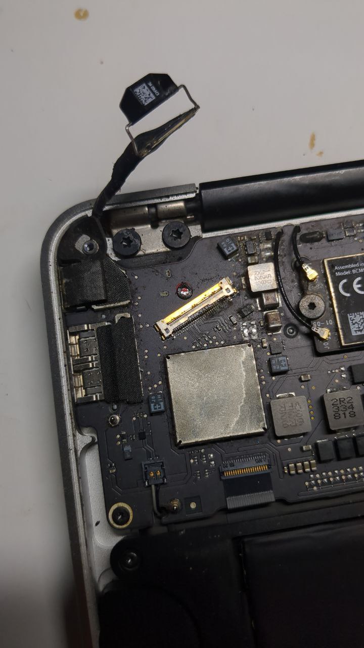 Water got spilled on a friend’s laptop, and would turn on but the screen didn’t show anything. Taking it apart showed the connection from the mobo to the screen had a short and melted and damaged the screen connector. The whole connector would have to be replaced, which I’m going to do once I source the right component and reset the laptop.