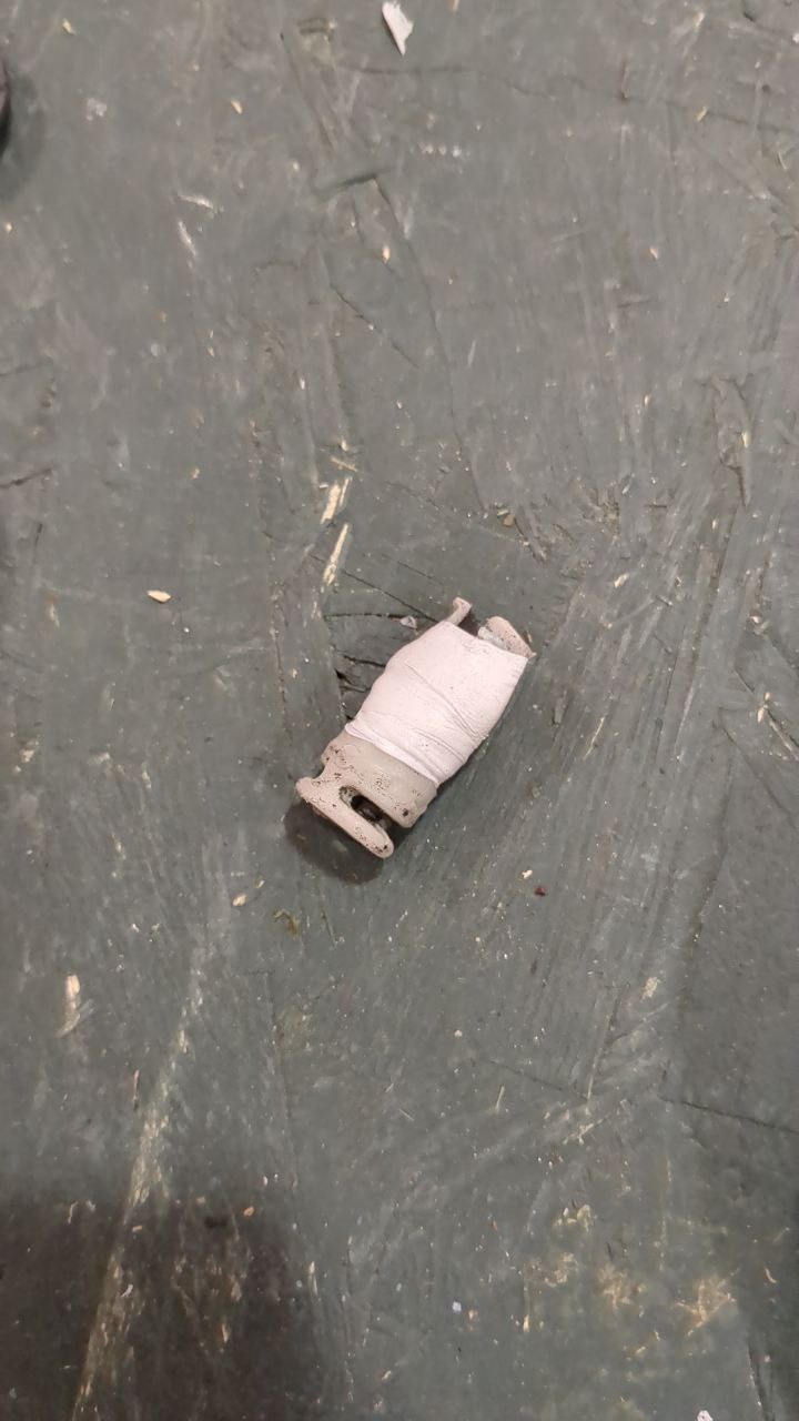 The wheel of a pull trolley kept falling off. Disassembling the mount, the plastic that holds the wheel on had lost the bend that it needs to hold the wheel on. I wrapped a load of teflon plumber’s tape around the axle to thicken it, and then forced the wheel over the bump so that it won’t come off again. Happy quick fix